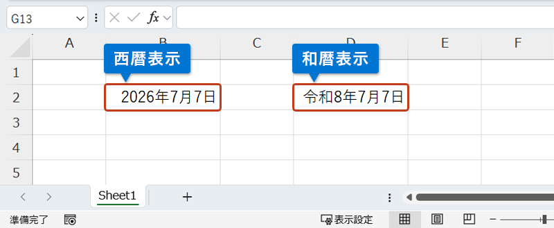 セルの日付表示を西暦から和暦に変更するにはどうすれば良いのでしょうか?ご教示ください。