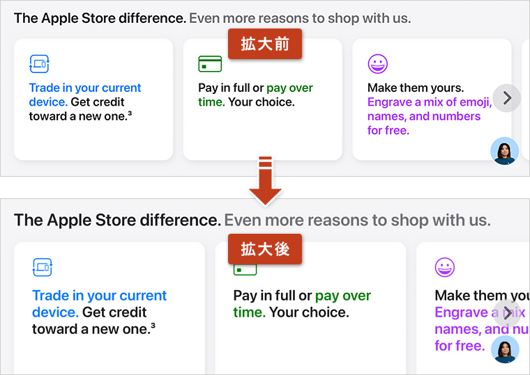 ページ内のフォントサイズのみが拡大されました。